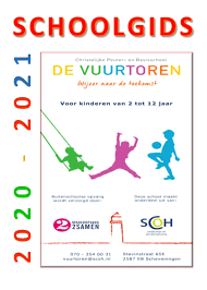 Deze schoolgids geeft belangrijkeinformatie overchristelijke basisschool De Vuurtoren. De school ligt in Scheveningen in een wijk tussen het strand en het Westbroekpark. De Vuurtorenprofileert zich als een eigentijdse school die oog heeft voor het kind endezebegeleidtnaar een mooie toekomst. Dit beeld komt tot uitdrukking in het motto: Wijzer naar de toekomst
